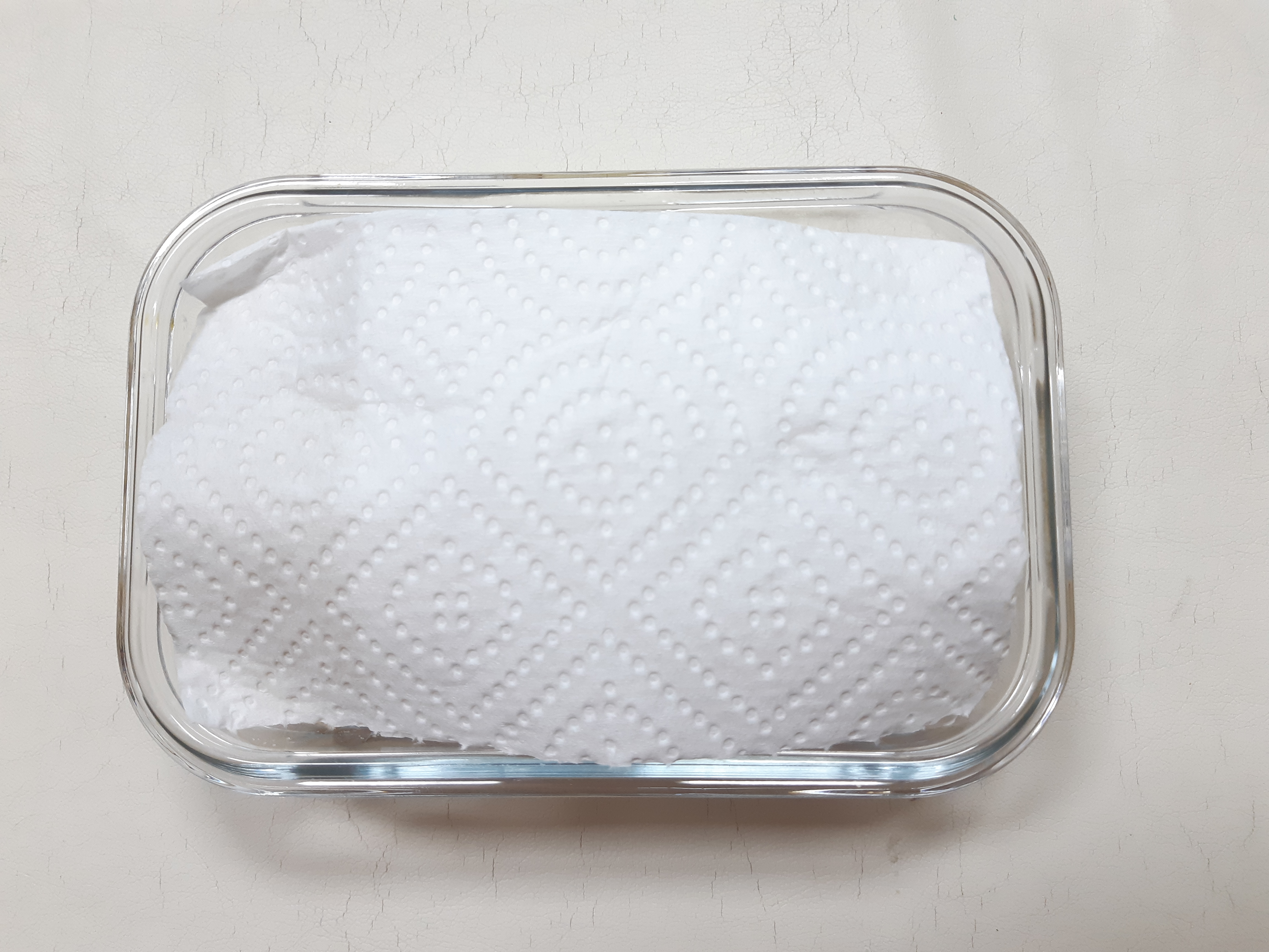 준비물 : 키친타월, 설탕, 생마늘, 글라스락(반찬통 아무거나)