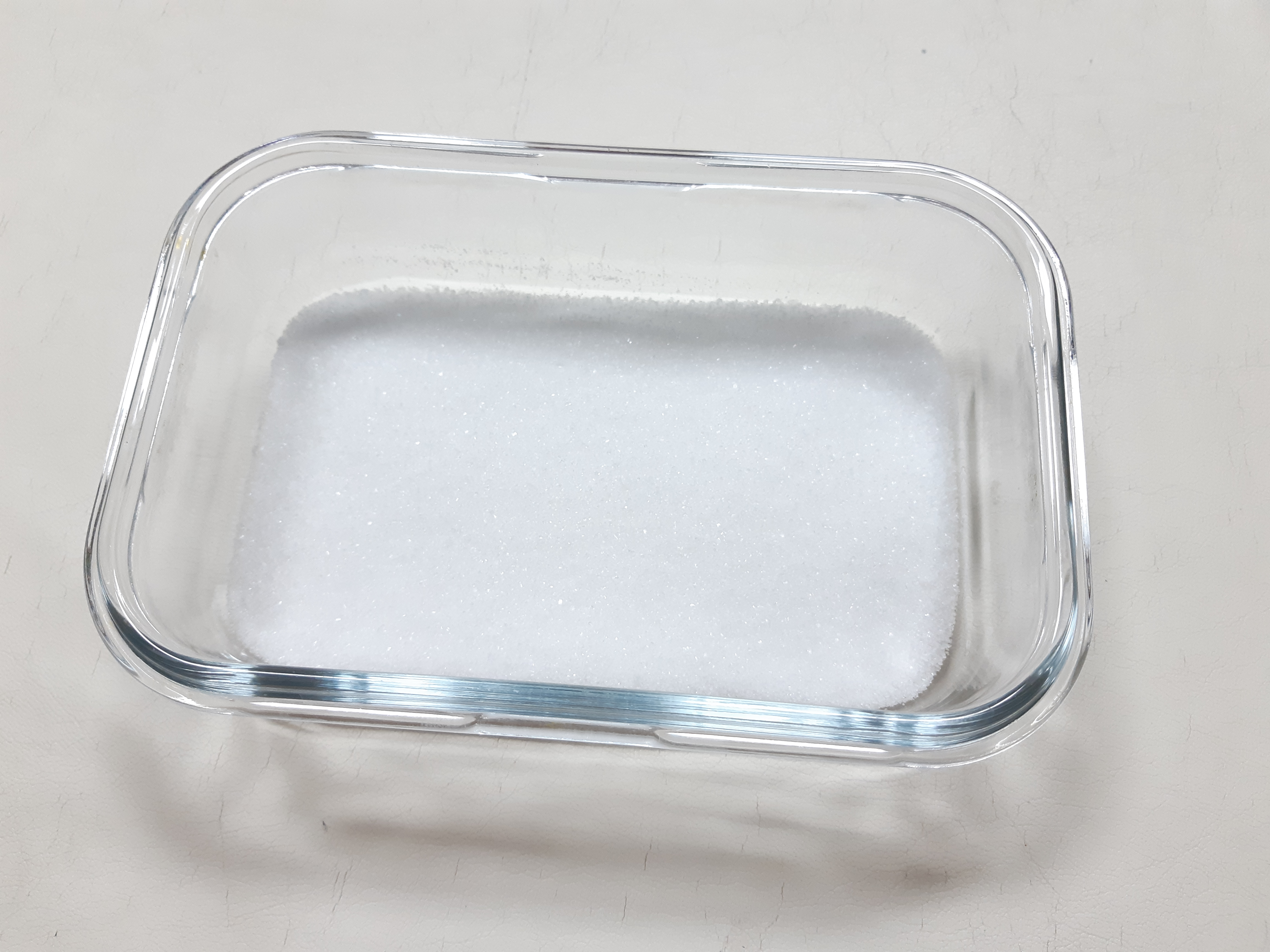 1. 반찬통에 설탕을 바닥이 보이지 않을 정도로 깔아 줍니다.