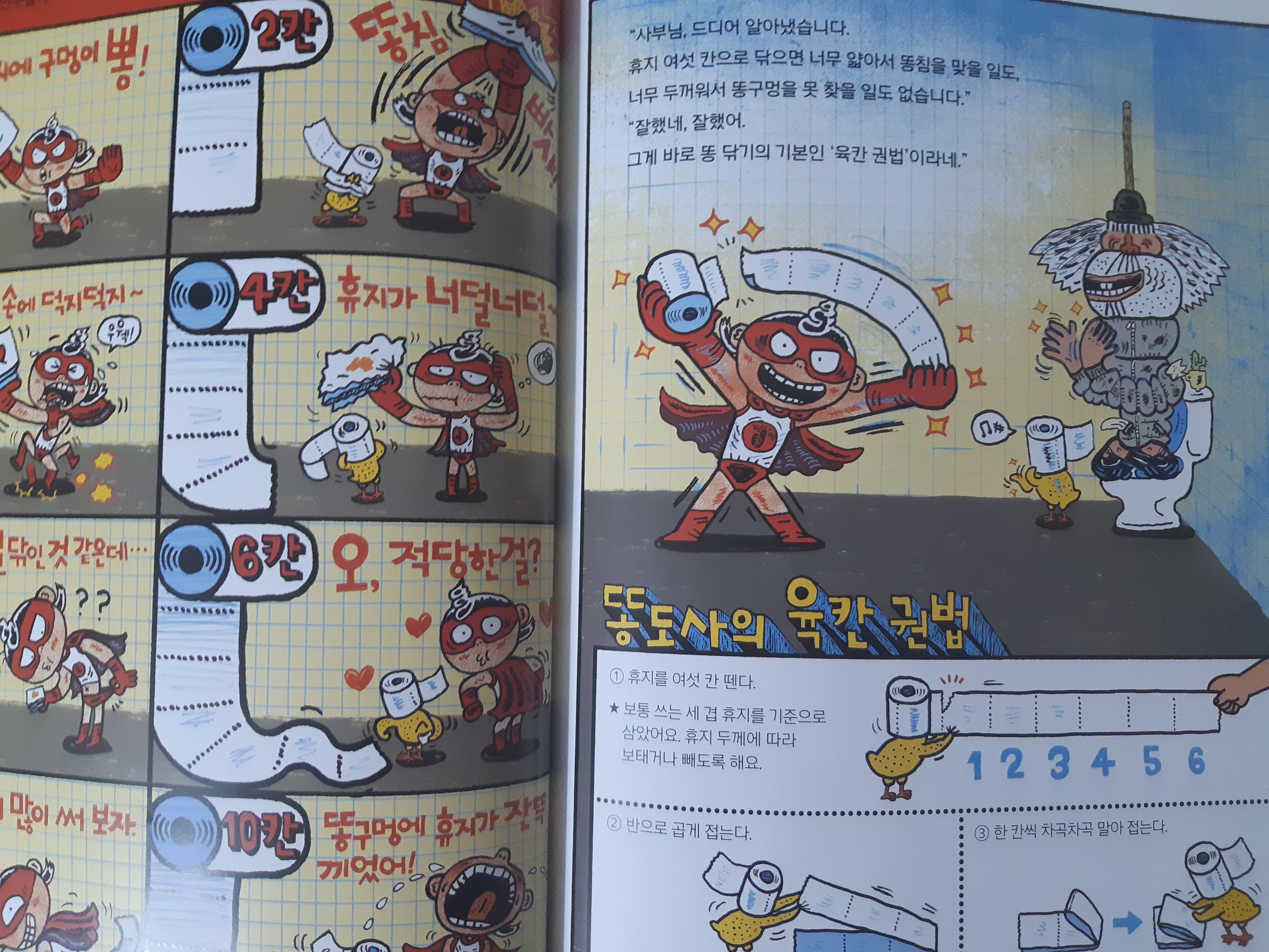 최근에 아들과 영풍문고에 갔었어요. 아들은 신간 도서에 똥이라는 글자를 읽더니 '슈퍼 히어로의 똥 닦는 법'이라는 책을 무작정 사달라고 했어요. 결국 똥 이야기를 좋아하는 6세 아들 때문에 내용도 보지 않고 구매하게 되었네요.