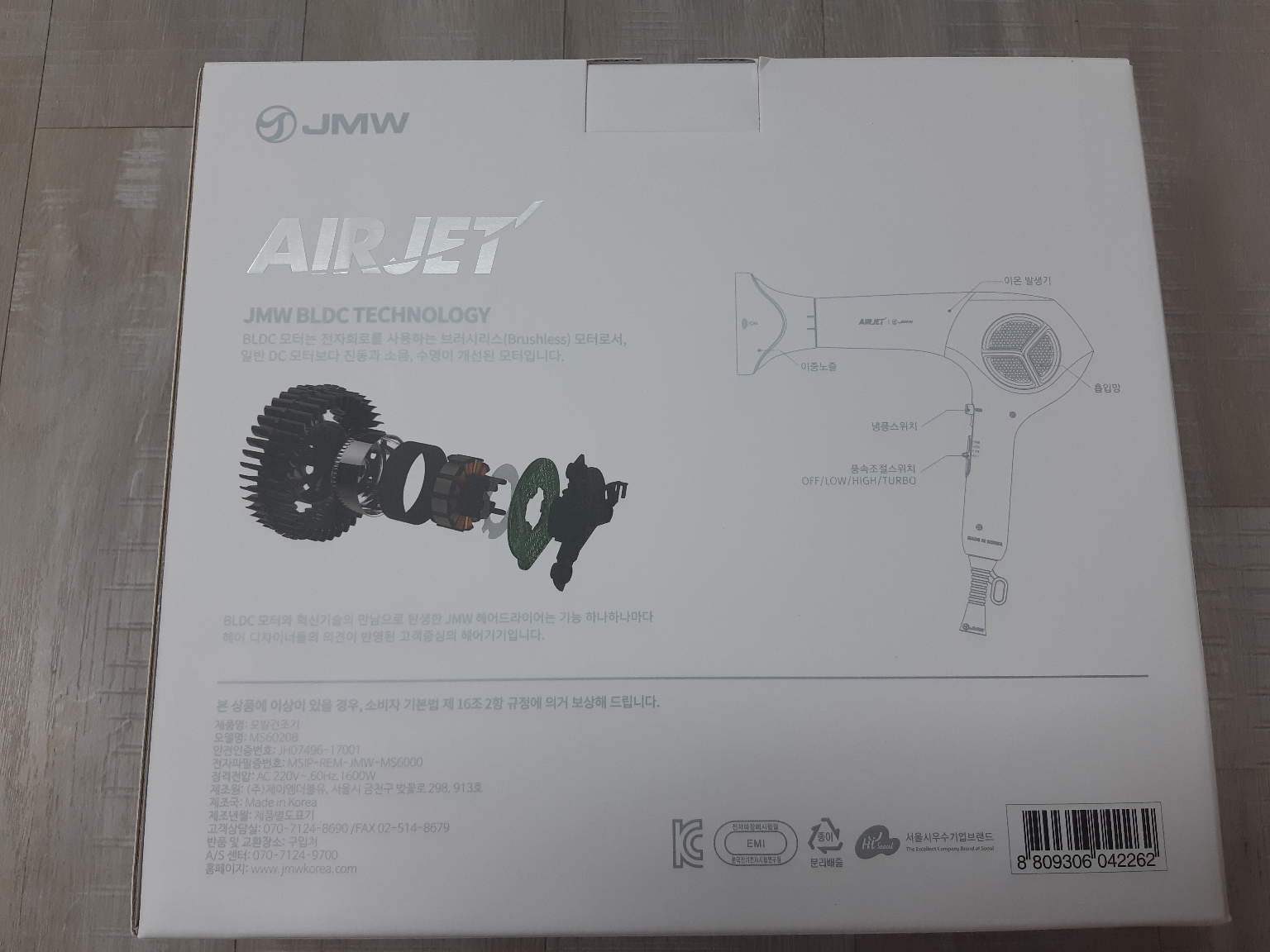 JMW 에어젯 터보 항공 모터 헤어 드라이기 MS6020 B 1600W
