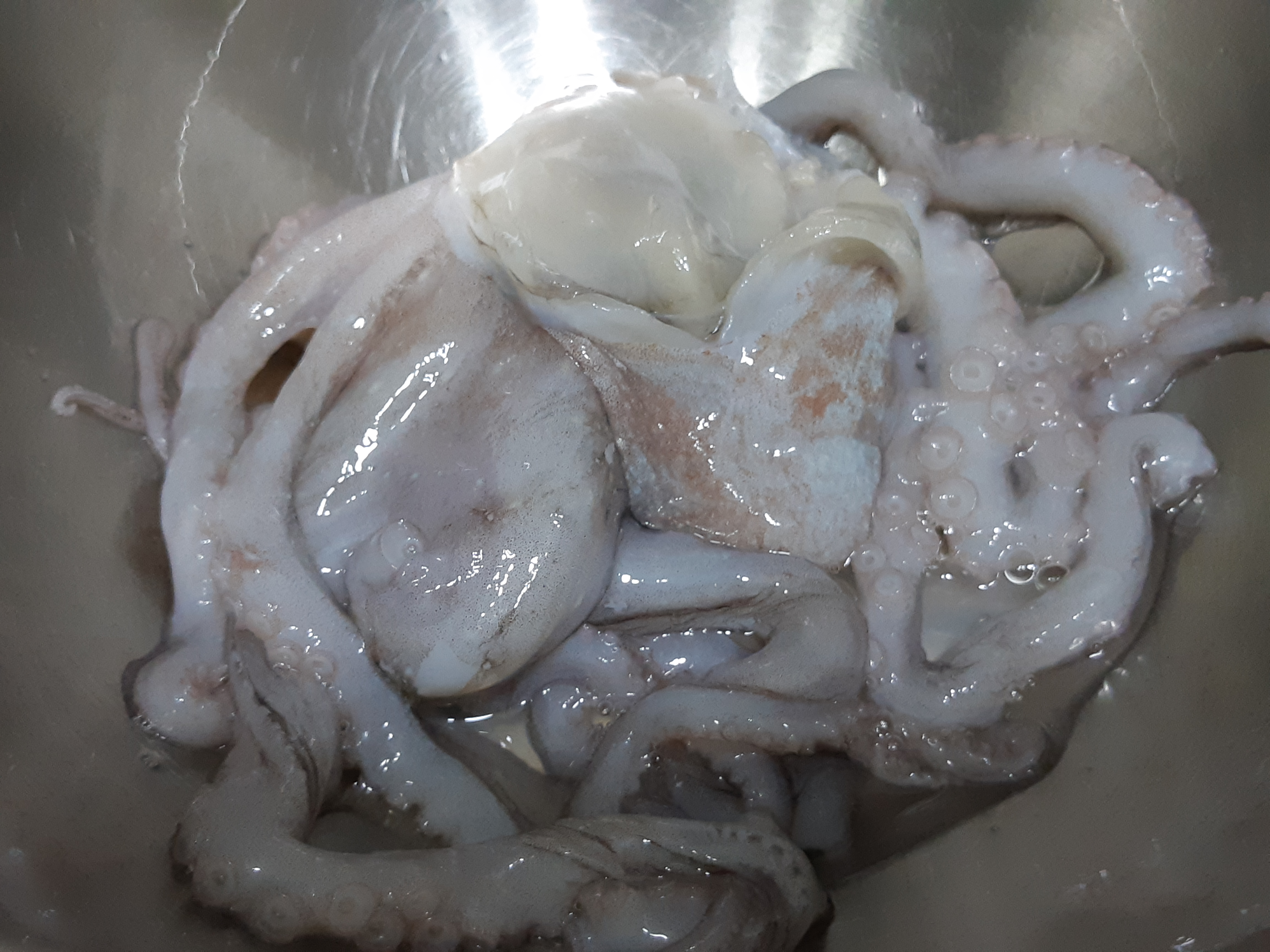 - 점심에 구매해서 저녁 식사로 먹었는데 싱싱하게 잘 살아 있었습니다. 밀가루로 빨판과 몸을 깨끗하게 세척 손질해 줍니다. 특히 빨판 쪽 다리는 길게 쭉쭉 잡아당기면서 닦아 줍니다.