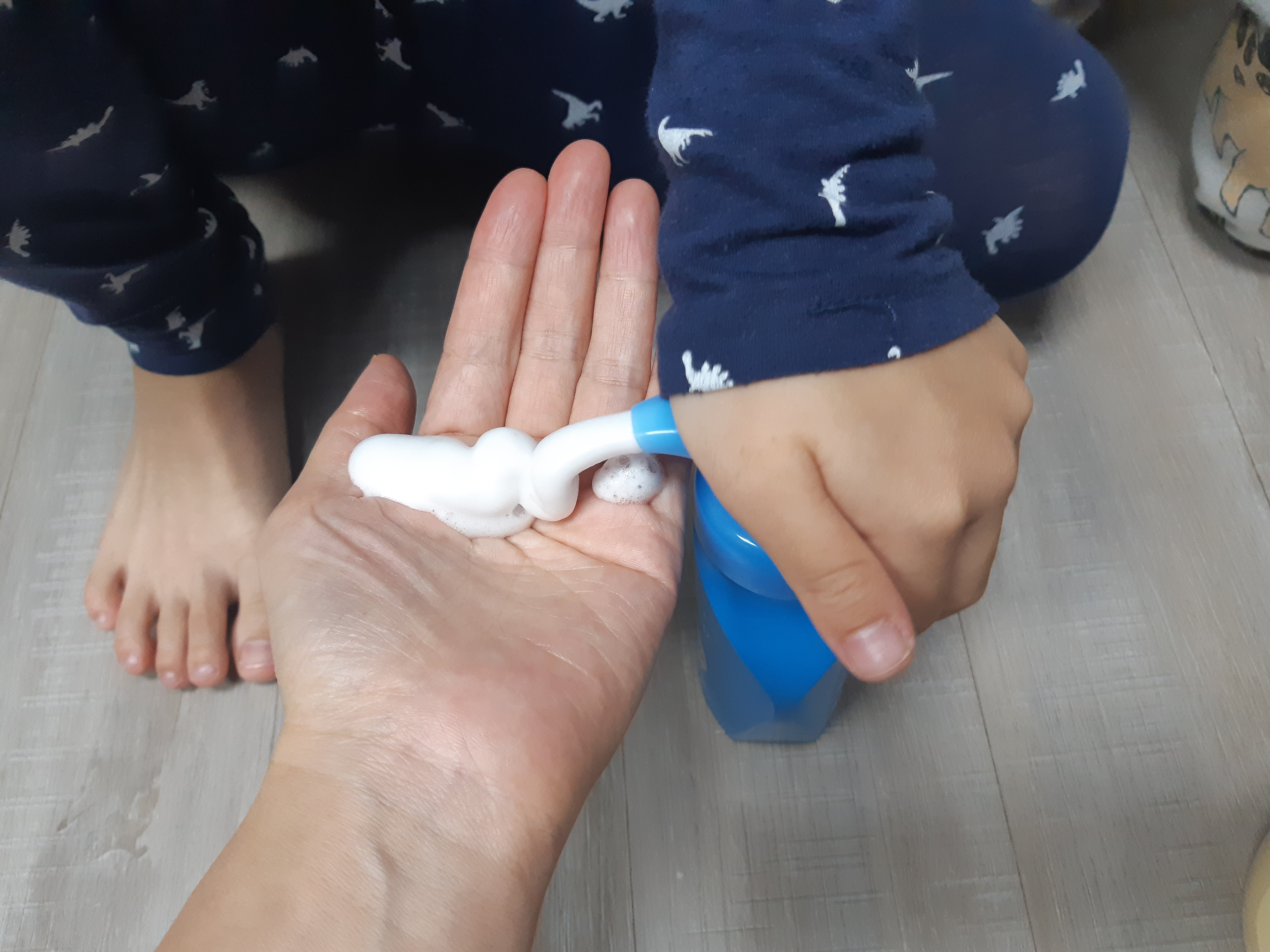 3. 눌러보니 손세정제 거품이 잘 나옵니다.