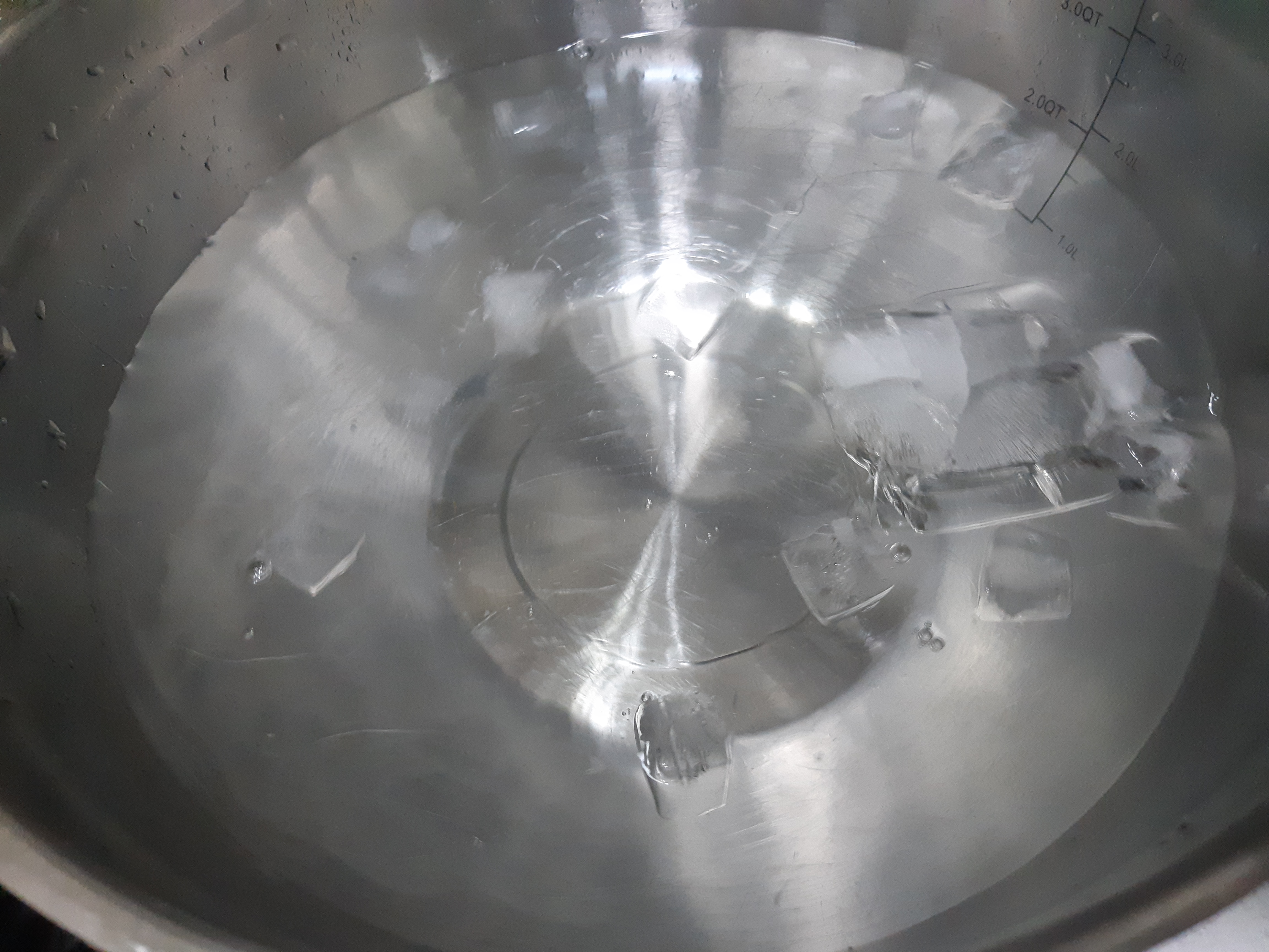 1) 얼음 넣은 차가운 물을 준비해 놓습니다.
