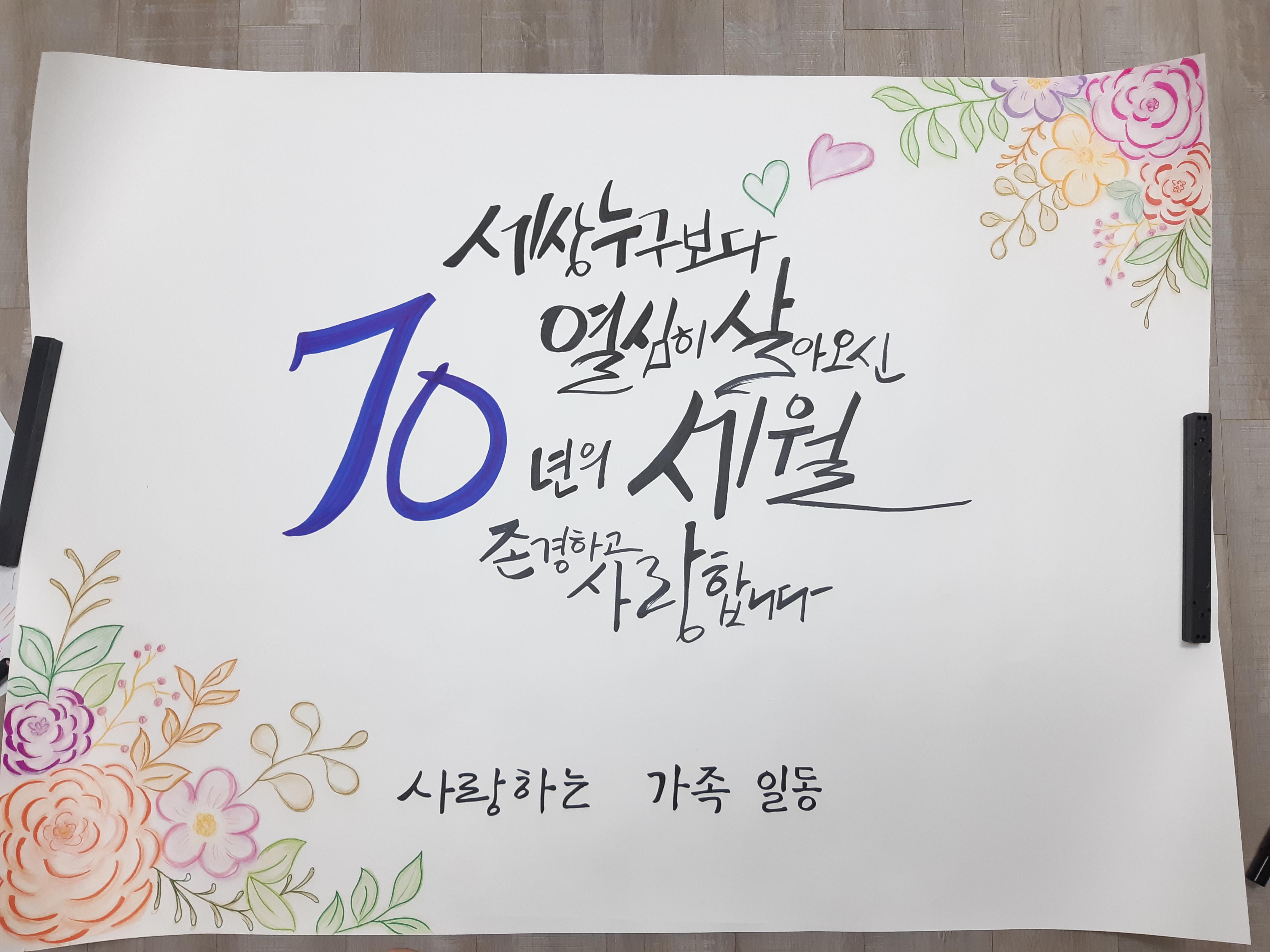아들의 할아버지 칠순 선물 / 축하 캘리그래피