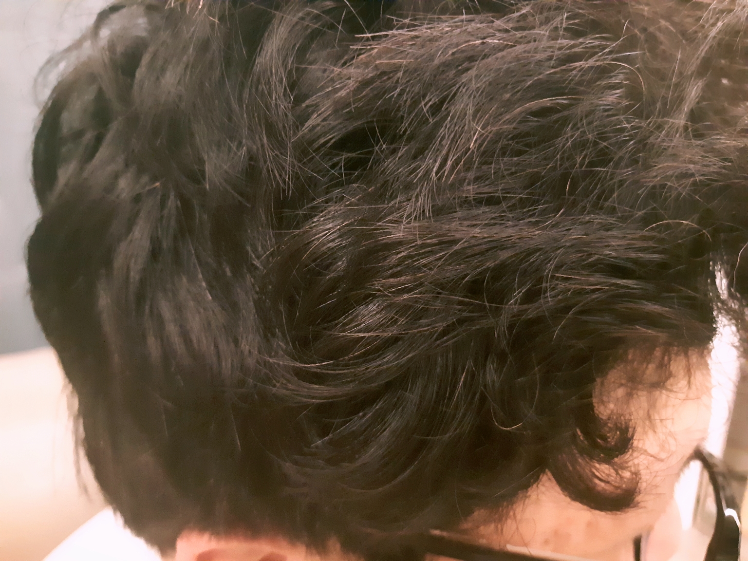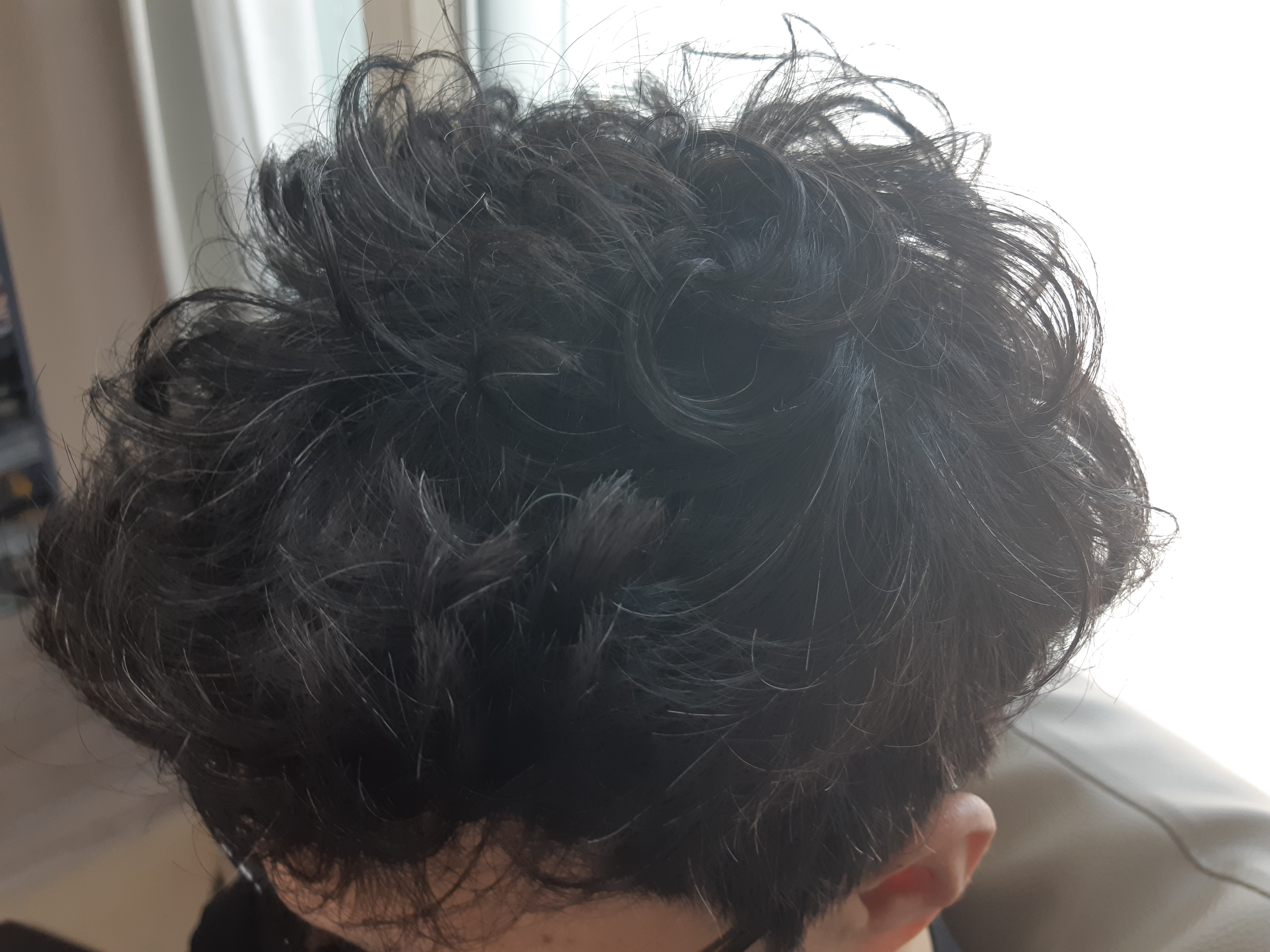 5회 사용 후 놀라운 효과가 보였습니다. 모발 컬러는 염색한 것처럼 어두운 갈색, 검은색처럼 변하고 새치 흰머리도 조금씩 어두워졌습니다. 전체적인 모발 컬러가 어두워지다 보니 새치, 흰머리가 덜 보입니다. 확실히 1회 차 앞쪽 모발보다 흰머리가 어두워졌습니다.
