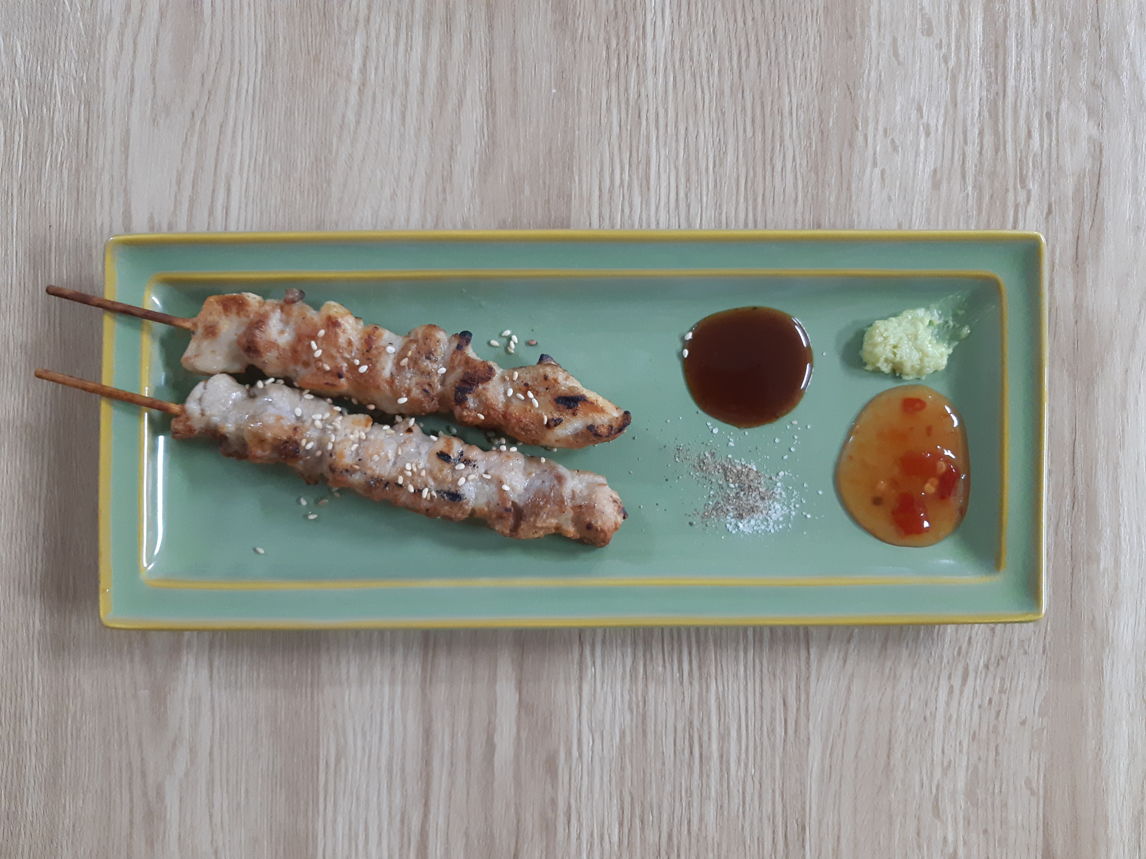 그냥 먹어도 되지만 다양한 소스로 맛있게 먹는 걸 추천하고 싶습니다. 전 돈가스 소스, 칠리소스, 소금 후추, 와사비 이렇게 준비했는데 솔직히 다 어울립니다. 강추한다면 와사비와 소금 후추입니다.