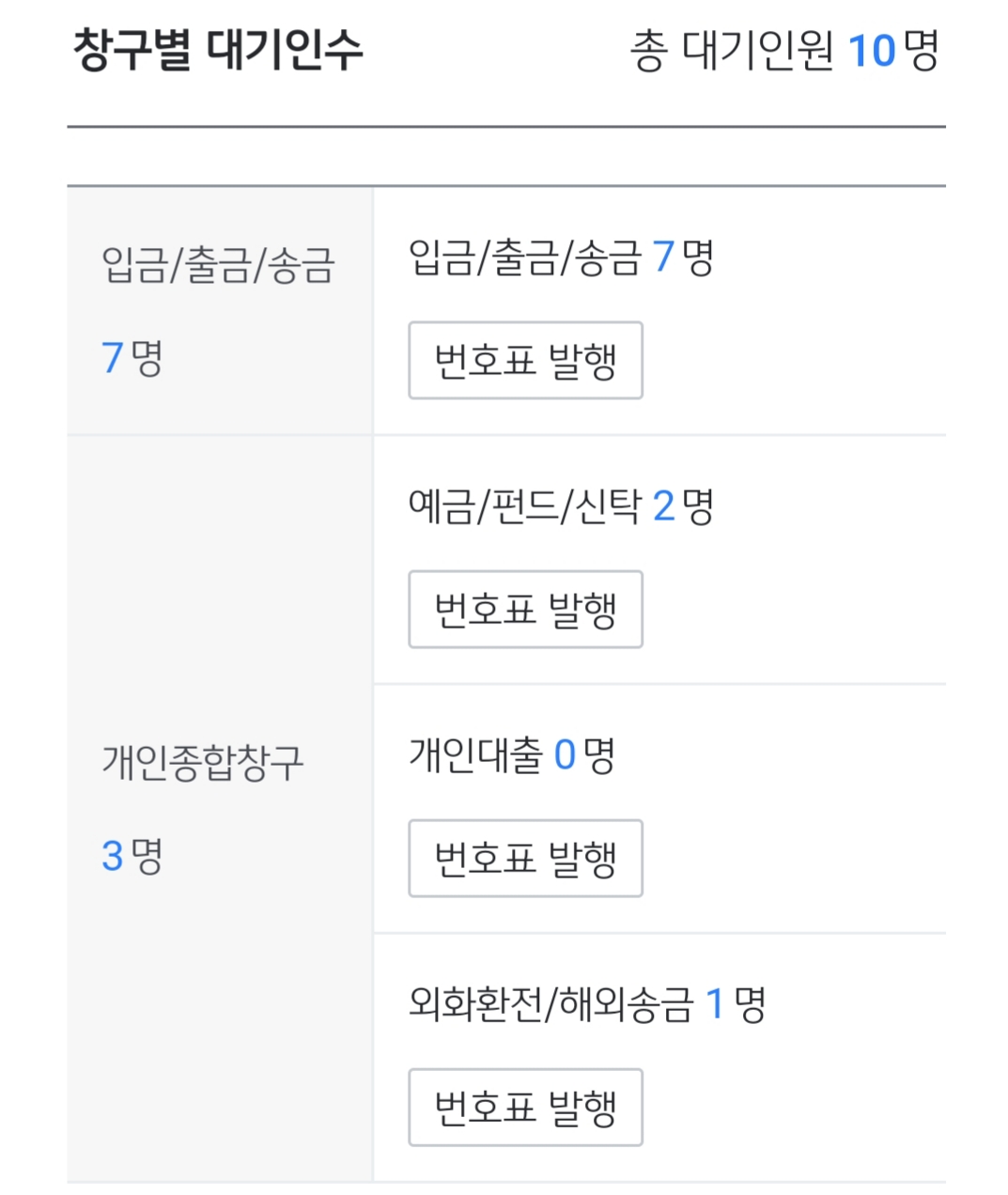 * 지점에 도착했는데 번호가 이미 호출된 경우에는 번호표를 다시 뽑고 기다리셔야 한다고 합니다. 대기 시간 확인하시어 미리 은행에 도착하시는 것이 좋을 것 같습니다.