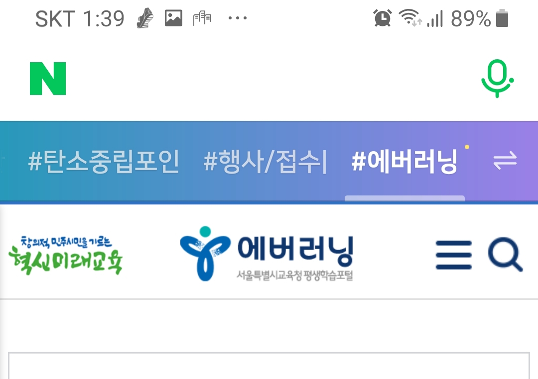 메인판에 에버러닝이 추가된 곳을 보면 화살표 두 개가 엇갈린 표시가 있습니다. 화살표를 선택하시면 메인판에 추가했던 항목들이 나옵니다.