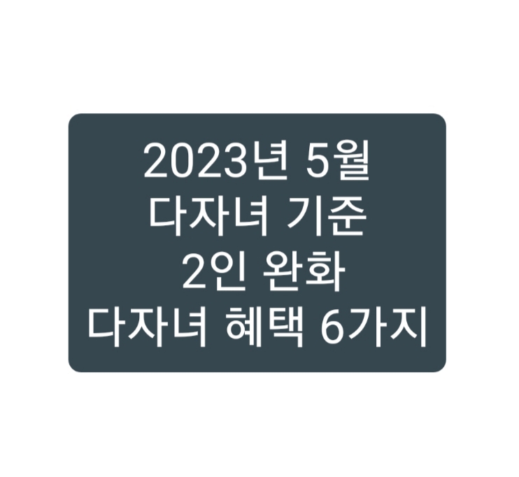 이상으로 3인에서 2인으로 완화된 다자녀 혜택 6가지를 정리해 보았습니다. 전 1인 자녀라서 받지 못할 혜택이지만 2인 이상 자녀를 두신 가정에 좋은 정보가 되었으면 합니다. 1인 자녀를 둔 가족에게도 안정적인 혜택과 제도가 있다면 출산 장려에 도움이 되지 않을까 하는 생각이 들기도 합니다.