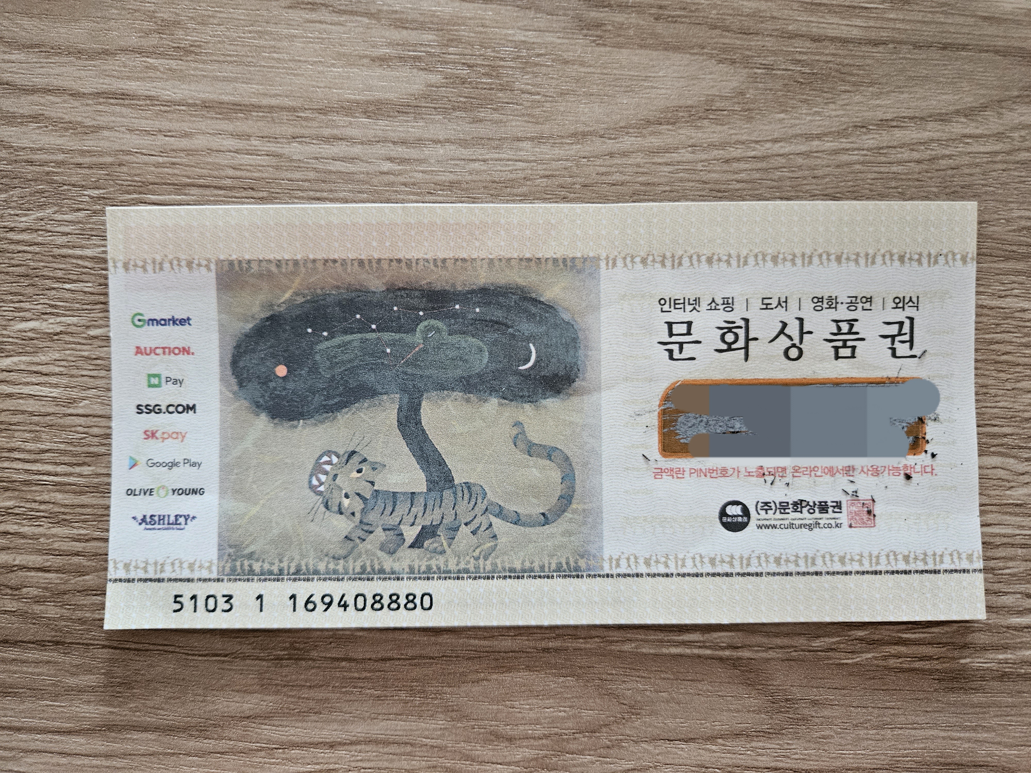 - 갖고 있는 지류 문화상품권 금액란 스크래치를 긁어 핀번호를 확인합니다.