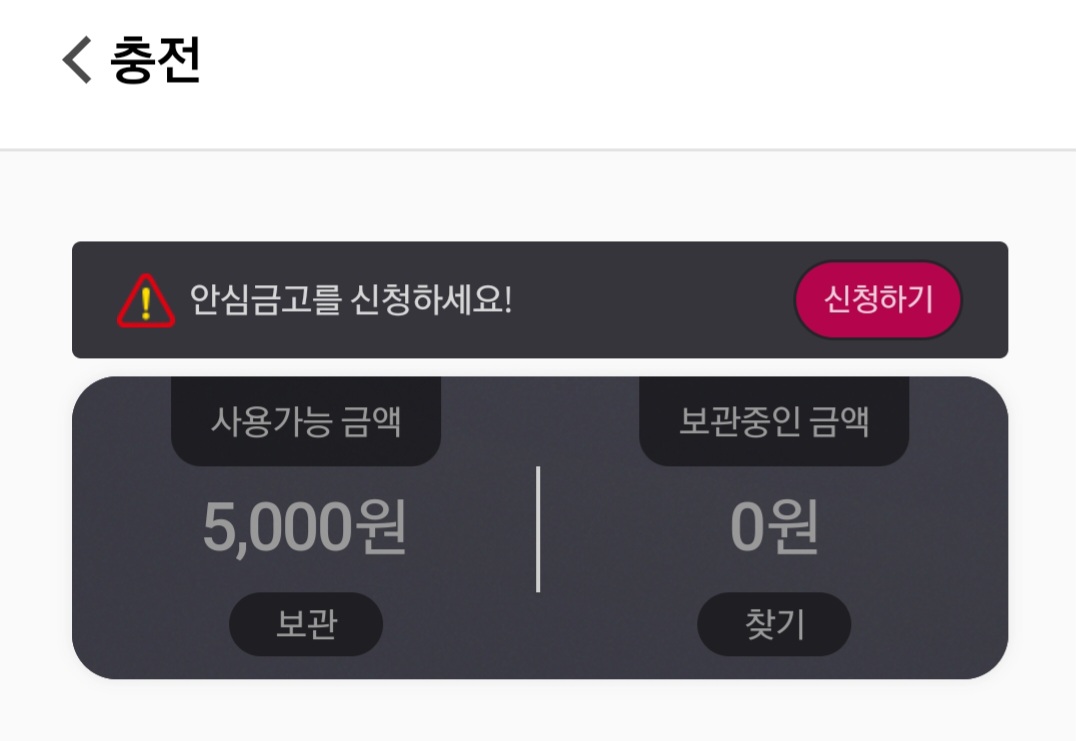 2. 첫 화면에서 '충전'을 눌러 줍니다.