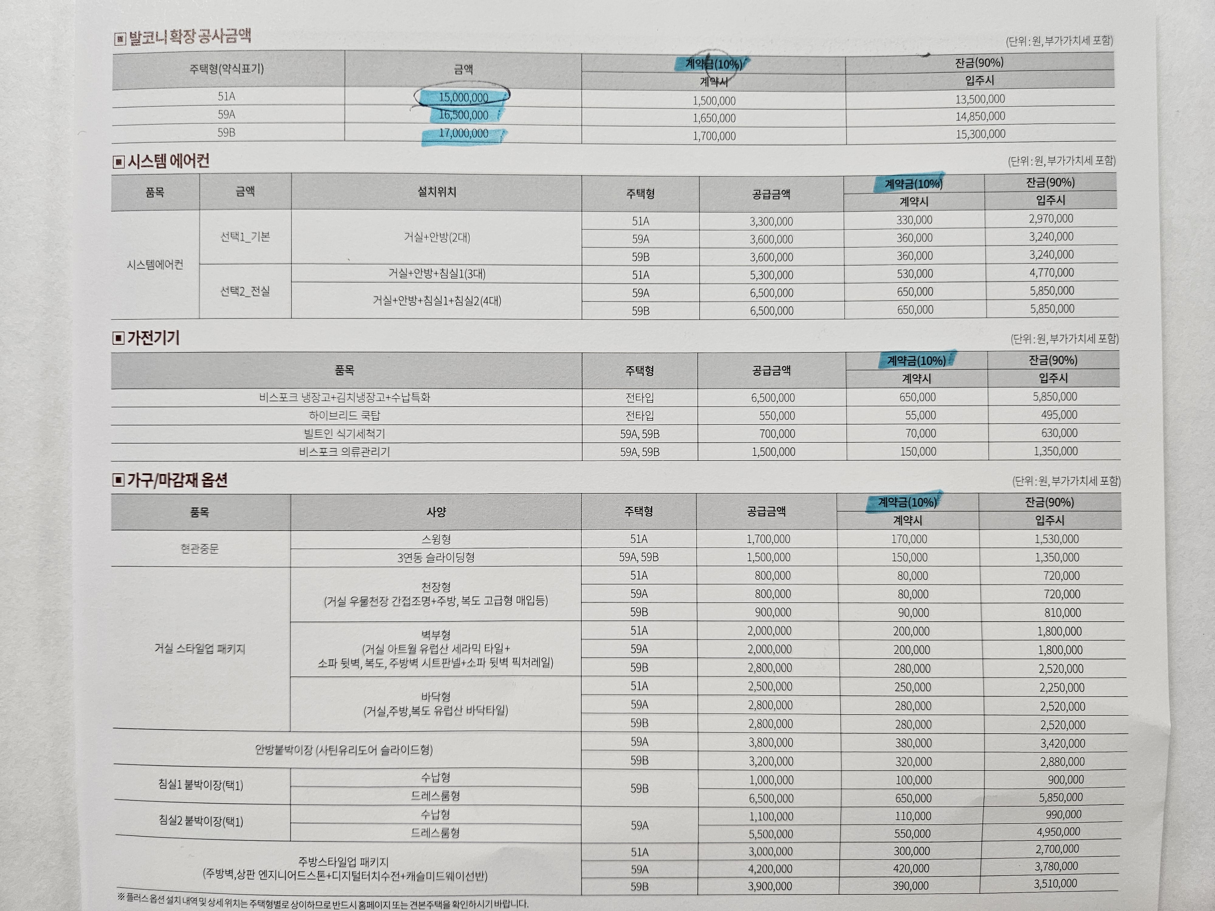 - 당첨 후 계약일자에 집 계약금 10%와 유상 비용에 대한 10%도 함께 입금을 해야 한다고 합니다.