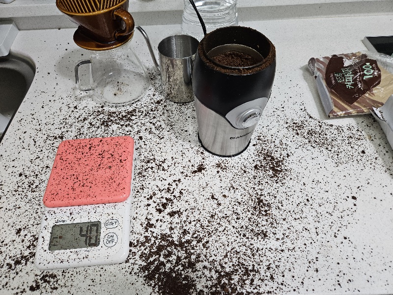 - 커피 원두 분쇄가 잘 되나 핸드드립용 굵기로 전체적으로 균일하게 분쇄하는 것은 조금 어렵다.