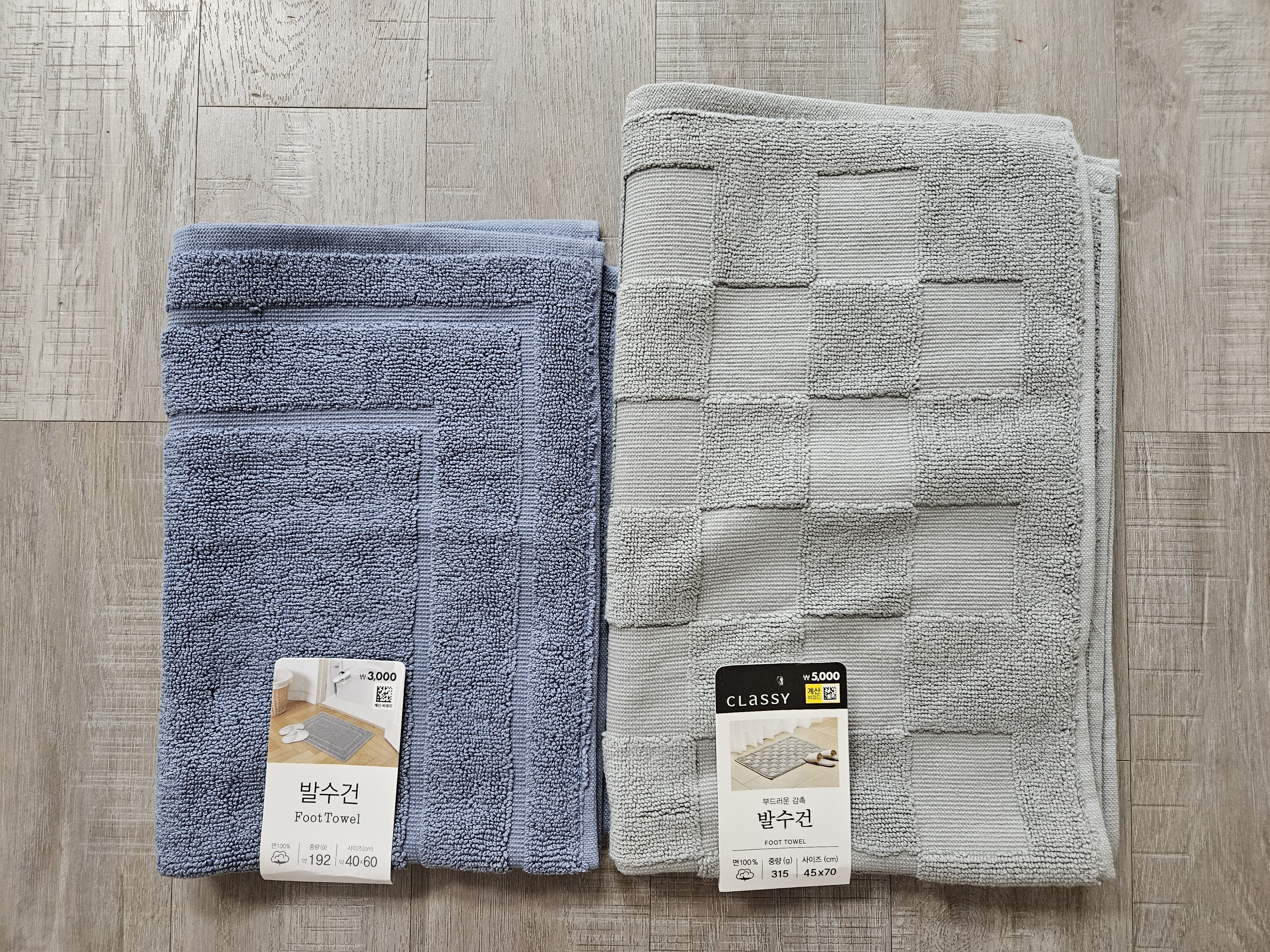 - 중량 차이가 있는데 192g : 315g으로 큰 사이즈가 확실히 도톰해서 밟았을 때 더 부드럽고 흡수력도 좋습니다.