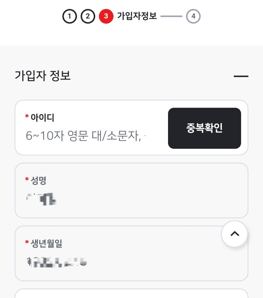 4) '가입정보'를 입력하면 '회원가입' 완료.