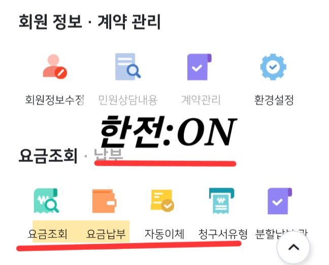 * 한전 0N 앱에서도 동일하게 회원가입 후 요금조회를 하실 수 있습니다. 한전0N 사이트에 들어가시면 하단에 앱설치 항목도 있으니 참고하세요.