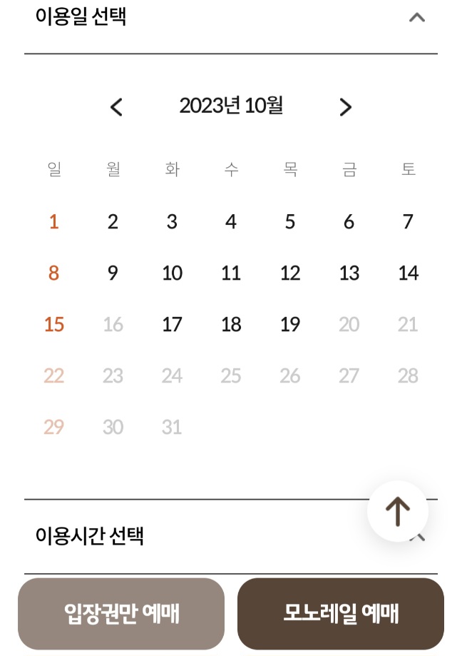 4. 하단에 예매시작(입장권, 모노레일) 선택하기.
