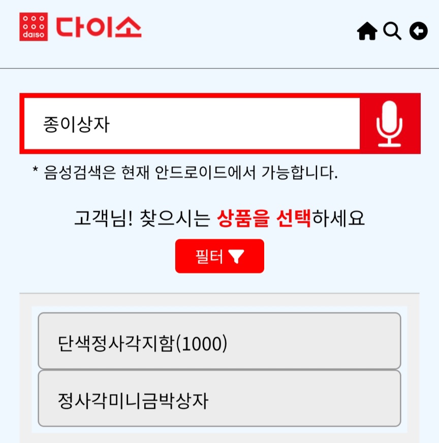 5. 방문한 매장의 다이소 모바일앱 창이 열리면 찾고자 하는 상품 입력하기.