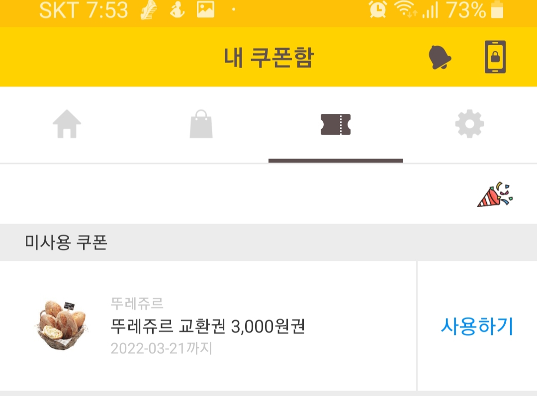 이번에도 아들이 옥수수 식빵이 먹고 싶다 해서 뚜레쥬르 3000원권을 구매했어요. 쿠폰을 구매한 후 매장에 가셔서 내 쿠폰함을 열어 구매한 교환권 바코드를 보여주시고 식빵의 차액만 따로 결제하시면 끝.