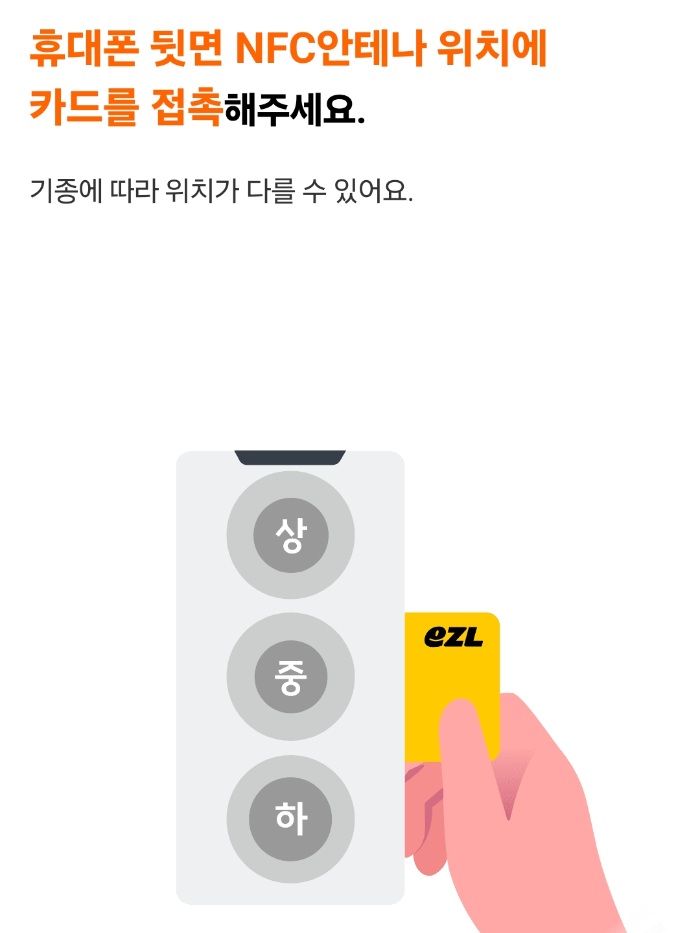 (휴대폰 기기마다 NFC 접촉 위치가 다를 수 있다고 함. 폰 중앙에 카드 놓았더니 인식했음.)