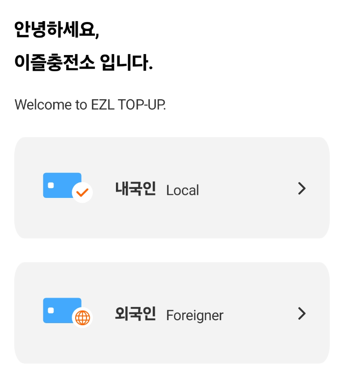 2. 앱설치 후 내국인 선택, 본인인증, 카드 등록하기.