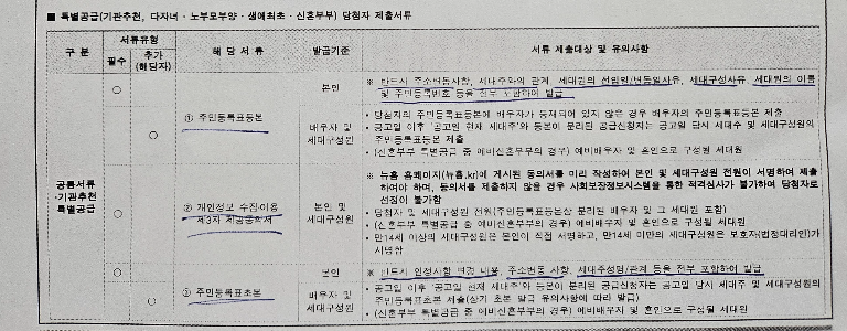 3. 다자녀 가구 / 노부모 부양 / 신혼부부 / 생애최초 제출 서류