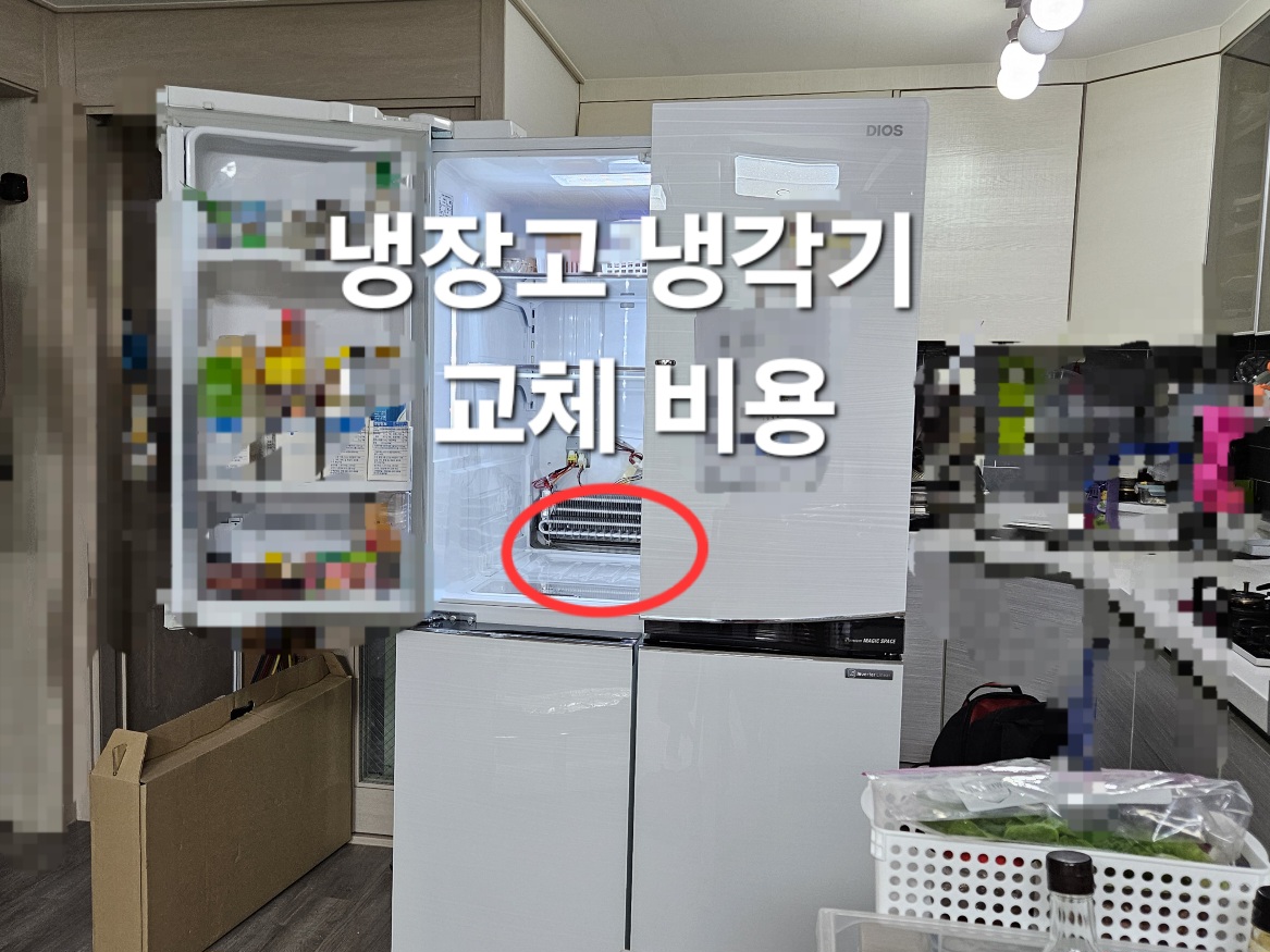 - 컴프레셔와 냉장실 냉각기 교체 비용은 컴프레셔는 10년 무상이라서 무료였으며 냉각기 교체는 16만 원 조금 넘게 지불했습니다. 부품값이 비싸네요. 주변에 물어보니 보통 10년 미만으로 냉장고 교체한다고 하네요. 우선 이사 계획이 있어서 수리를 하고 나중에 이사 후 문제가 발생하면 새 제품으로 사야 할 것 같습니다.