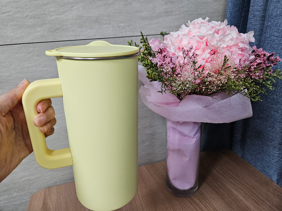 - 손잡이가 두껍고 튼튼해서 물병 잡기, 꺼내기, 이동할 때 안정감이 있다.