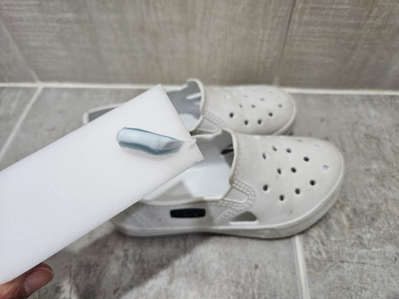 매직블럭은 각 가정에서 청소용으로 많이 사용하는 제품인데요. 화장실 세면대 청소용으로 자주 사용하는데 EVA 실내화도 세탁할 수 있습니다. 매직블록에 물을 적셔 주고 유통기한이 지났거나 잘 사용하지 않은 치약을 쭉 짜서 실내화를 닦아 줍니다. 거품도 잘 나요. 그리고 깨끗하게 물로 헹궈주면 끝!