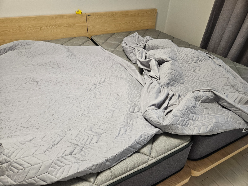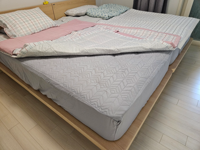 방수 재질이나 얇은 천 종류의 매트리스 커버들이 많이 있었는데 방수재질은 '바스락' 소리가 난다고 해서 수면을 조금 방해하지 않을까 싶어서 패스했습니다. 얇은 천 소재는 여름에 땀으로 인해 매트리스에 얼룩과 세균 등 약간의 찝찝함이 있을 것 같아서요.