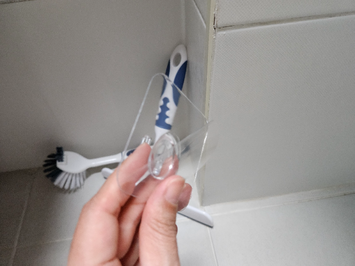 기존에 화장실 청소 도구를 정리할 때 사용한 헹거는 화이트 컬러에 뒷면은 실리콘에 열을 가해 고정을 시킬 수 있었는데요. 이 제품도 오래 사용하긴 했는데 간혹 쉽게 떨어지는 경우도 있고 고리 부분이 깨져서 망가질 때도 있었습니다. 고정할 때 번거로움이 있어서 이번에 좀 더 간편한 제품으로 알아보았습니다.