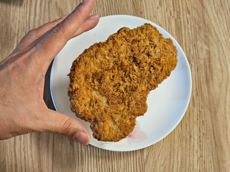 냉동보관으로 유통기한도 넉넉하고 낱개 포장되어 있어서 냉동실에 정리해서 보관하기 좋습니다. 별도로 지퍼팩에 따로 넣지 않아서 좋네요. 사이즈와 두께는 고메 돈까스와 비교한다면 조금 더 작고 얇은 편입니다. 성인에게는 적은 양일수도 있지만 8살 아들에게는 한 끼 배불리 먹을 수 있는 양입니다.