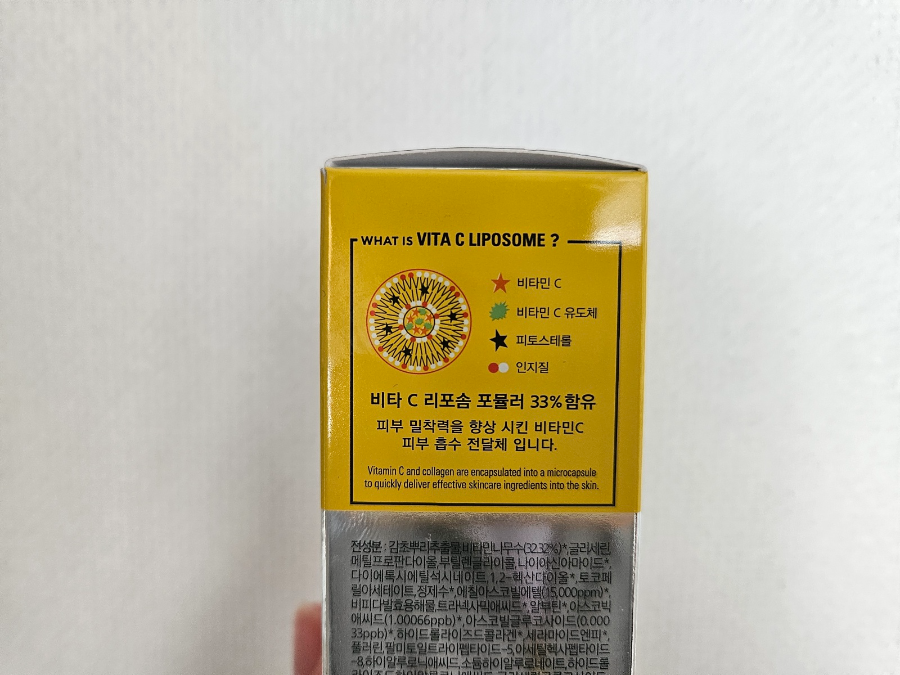 비타민 C가 많이 함유되어 있어서 컬러는 노랗고 향은 산뜻한 향이 납니다. 향 때문에 그런지 바르면 왠지 젊어질 것 같은 느낌이 들기도 합니다. 향긋하고 상큼한 향에 바를 때마다 기분이 좋아요. 저만 그런 건 아니겠죠!