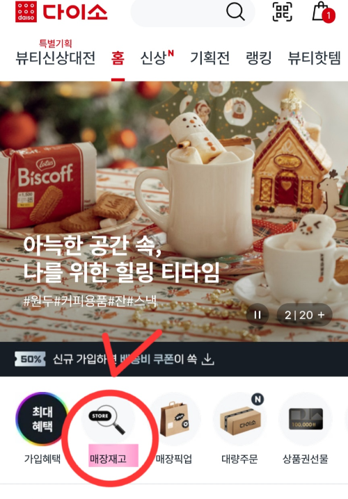 1. 다이소앱이나 다이소 몰을 검색해 열기.