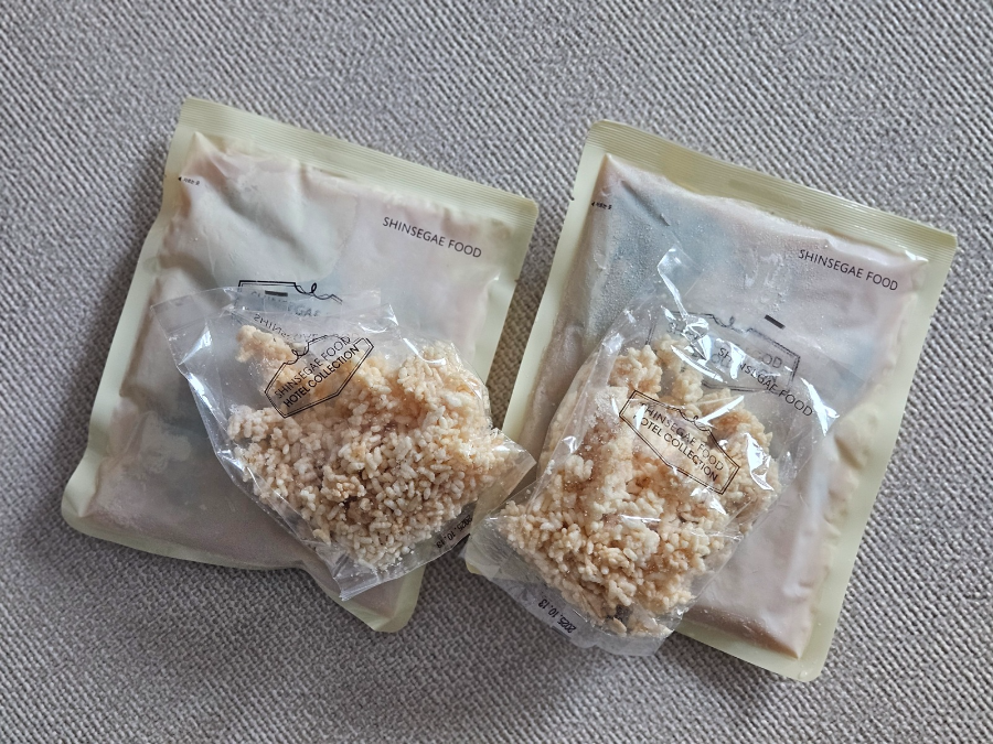 1팩에 2인분 양으로 소스 2개, 누룽지 2개 낱개로 들어있어요. 총 4인분 냉동식품으로 가격은 14,980원, 신세계포인트 카드 있을 시 2,500원 할인 적용해서 판매 중이었습니다. 12,480원에 구입했어요.
