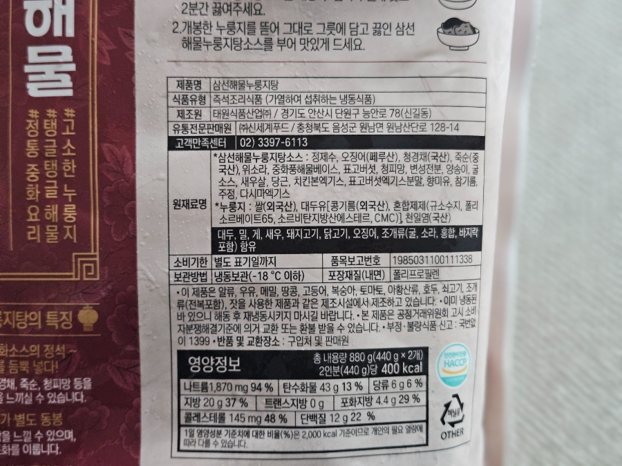 - 1팩에 2인분이라고 하는데 양이 살짝 적다는 느낌이 있어요. 소스보다는 누룽지가 더 많았으면 하는 아쉬움이 있어요.
