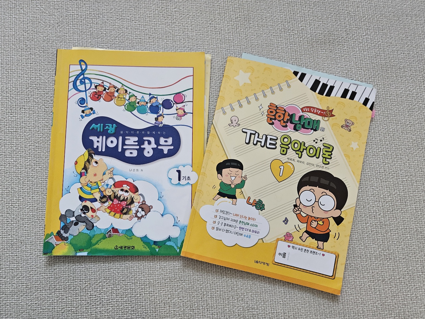 피아노 실기를 하기 위해서는 기본적인 피아노의 이해와 악보를 볼 줄 알아야 합니다. 그래서 피아노 음악 이론과 계이름 공부는 초기에 계속해야 하죠! 그래서 엄마표 이론 공부 교재로 세광 계이름 공부 1과 아들이 좋아하는 만화 캐릭터가 있는 흔한 남매 THE 음악이론 1을 하고 있어서 소개해 볼게요.