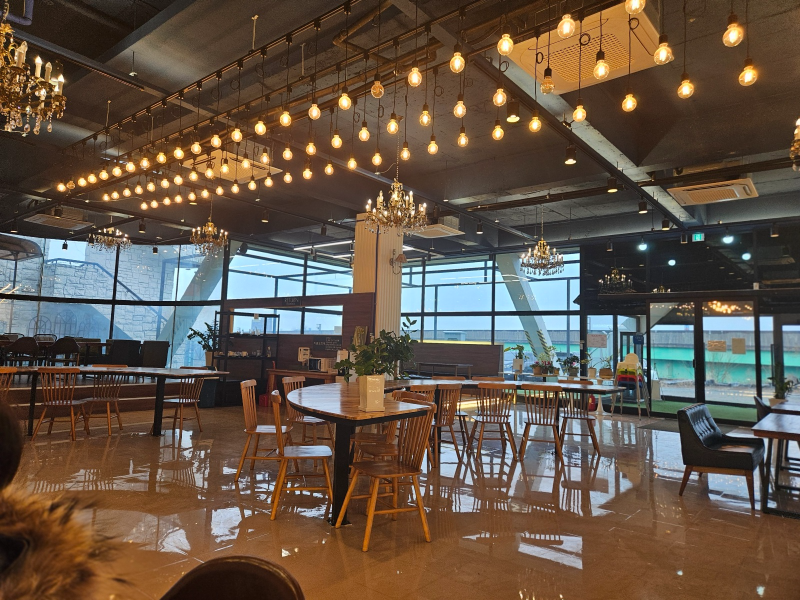 1층 카페 내부가 엄청 커요. 아이들과 엄마들이랑 온 팀, 연인, 가족단위 등 손님들이 있었는데 아이들은 벽 쪽에 푹신한 의자가 있는 곳에 놀고 있었어요. 그 모습을 보더니 '아직 어리네' 하면서 초2 아들이 얘기하는 거 있죠! 본인도 아직 어리고 "너도 어릴 때 저렇게 놀았어." 하니 웃네요. ㅋㅋ