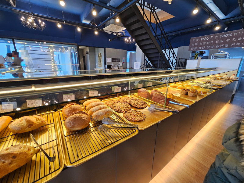 물어보니 다 팔려서 없다고 해요. 제가 간 시각이 늦은 오후여서 다 팔렸나 봐요. 이곳 빵은 유기농 밀에 당일 생산 당일 판매를 원칙으로 한다고 합니다. 왠지 이 문구가 제빵에 자신감도 있고 맛있을 것 같은 느낌이 들었어요. 가격은 다른 대형 베이커리 카페보다는 착하다고 생각이 되었어요.