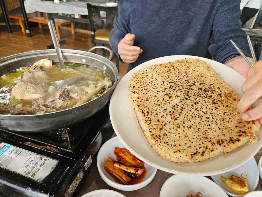 국물이 건강해지는 기분이 드는 맛이었어요. 고기 식감은 부드럽고 계속 손이 가는 맛, 쉬지 않고 계속 먹기만 했어요. 닭고기를 거의 먹은 후 누룽지 넣고 죽처럼 끓여 먹었는데 고소하고 맛있었어요. ㅋㅋ 누룽지가 꽤 도톰해서 그냥 먹어도 고소했어요. 어머니는 죽을 안 좋아하셔서 누룽지 상태로 드셨어요. ^^