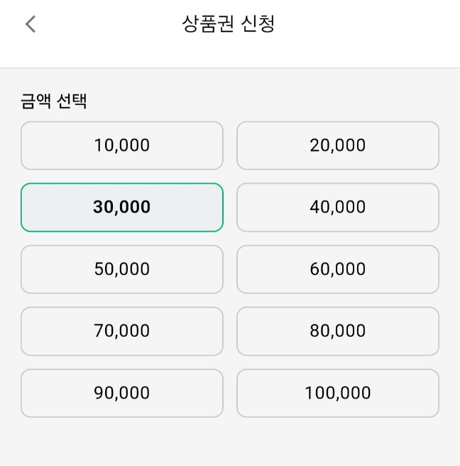 2. 본인 모은 포인트의 만원 단위 상품권을 선택.