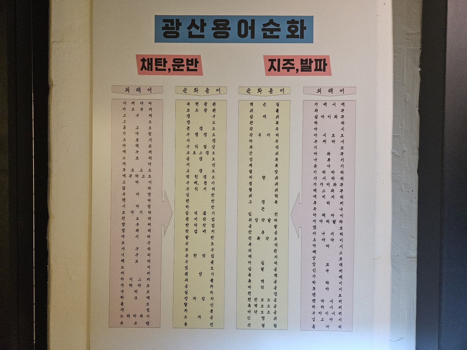 모의 갱도에서는 탄광 작업장의 모습을 재현해 놓아서 아이들에게 설명하면서 이해할 수 있도록 잘 꾸며져 있어요. 모의 갱도를 지나면 냉풍터널이 나와요. 시원한 바람을 맞으면서 걷다 보면 벽 쪽에 탄광 인부들의 금기 사항들이 적혀 있어요. 읽다 보면 여러 가지를 생각하게 되네요.