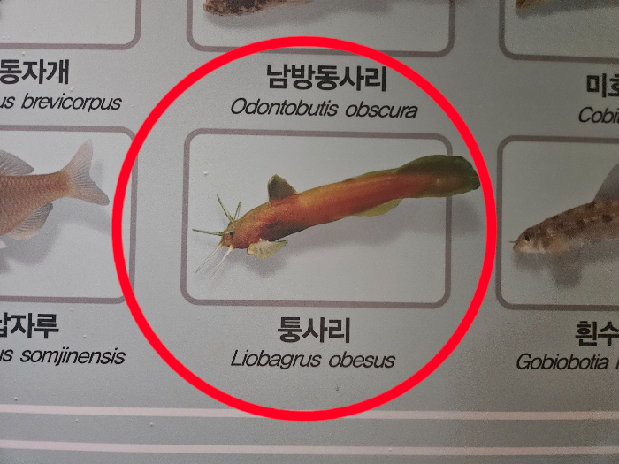 혹시나 물고기 잡아서 채집통 넣어 둘꺼라면 잠깐만 관찰하고 풀어 주면 좋을 것 같아요. 물고기는 총 10마리 넘게 잡았는데 이 중 처음 보는 물고기가 있었어요. 미꾸라지와 메기를 닮았는데 조카랑 느린 엄마가 잠자리채로 잡았어요. 사진을 못 찍었는데 다누리 아쿠아리움에 가서 전시되어 있는 물고기를 보고 알게 되었어요.