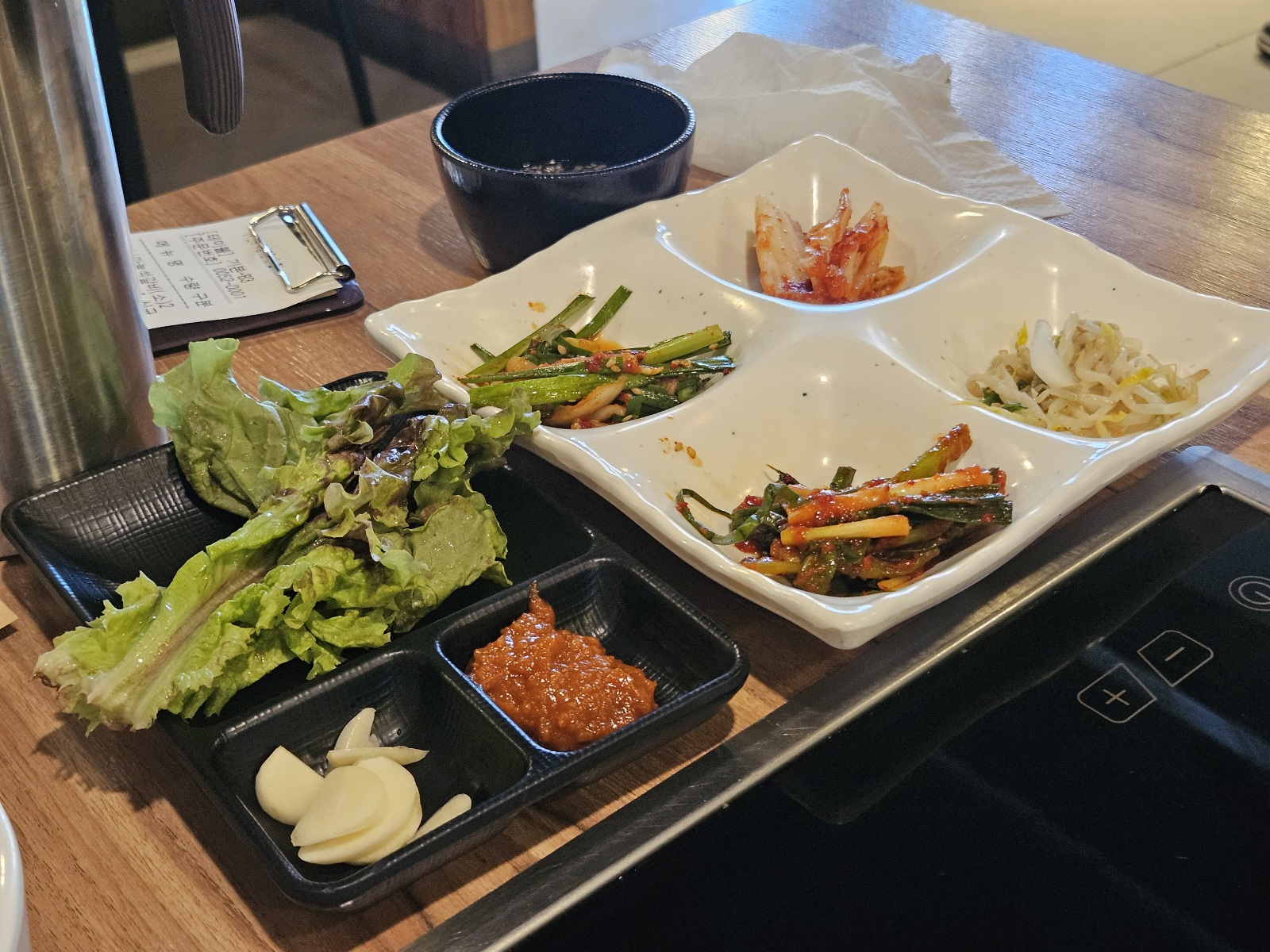 수기 작성 대기 후 순번이 되어 자리를 안내 받았어요. 메뉴는 고민하다가 마늘 석갈비 + 비빔막국수 + 물막국수 + 곤드레마늘영양밥을 주문했어요. 어머님과 함께 여행 와서 첫 식사라서 푸짐하게 시켰는데 식사비가 많이 나왔네요.^^: (성인 3명 + 어린이 1명이 먹은 메뉴입니다.)