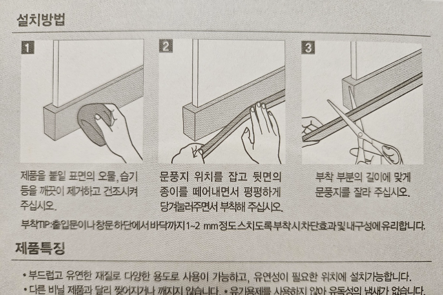 - 실외용 문풍지 탄탄해서 차단효과가 더 좋다고 느껴짐.