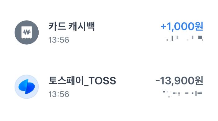 [토스페이 - 카드 결제 후 카드 캐시백 바로 입금]